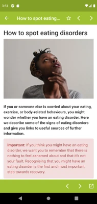 The Eating Disorder Support App enables people with disordered eating and eating disorders, and people close to them, to find useful information, self-care tips and links to support - all in one place.