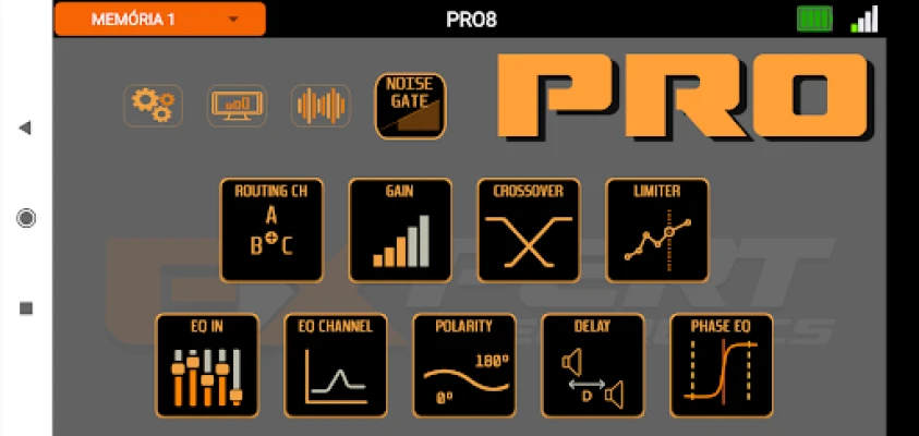 Controle do Processador de áudio EXPERT PRO8 configurável via bluetooth.