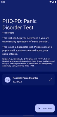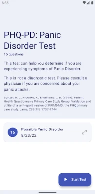 Disclaimer: This test is NOT a diagnostic test. A diagnosis can only be provided by a qualified healthcare professional. Please consult a physician if you are concerned about your risk of panic disorder.