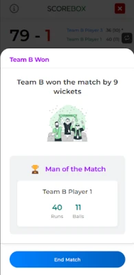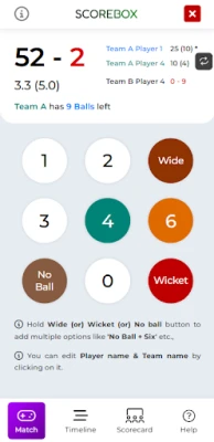 To overcome this issue we have developed the SCOREBOX app. You just need to choose the number of overs you want and the innings you want to start and the number of players in each team and proceed to count.