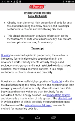 This animation has useful information on obesity, and focuses on the causes, measurements and risk factors of obesity. It also describes the complications, treatment options and corrective measures.